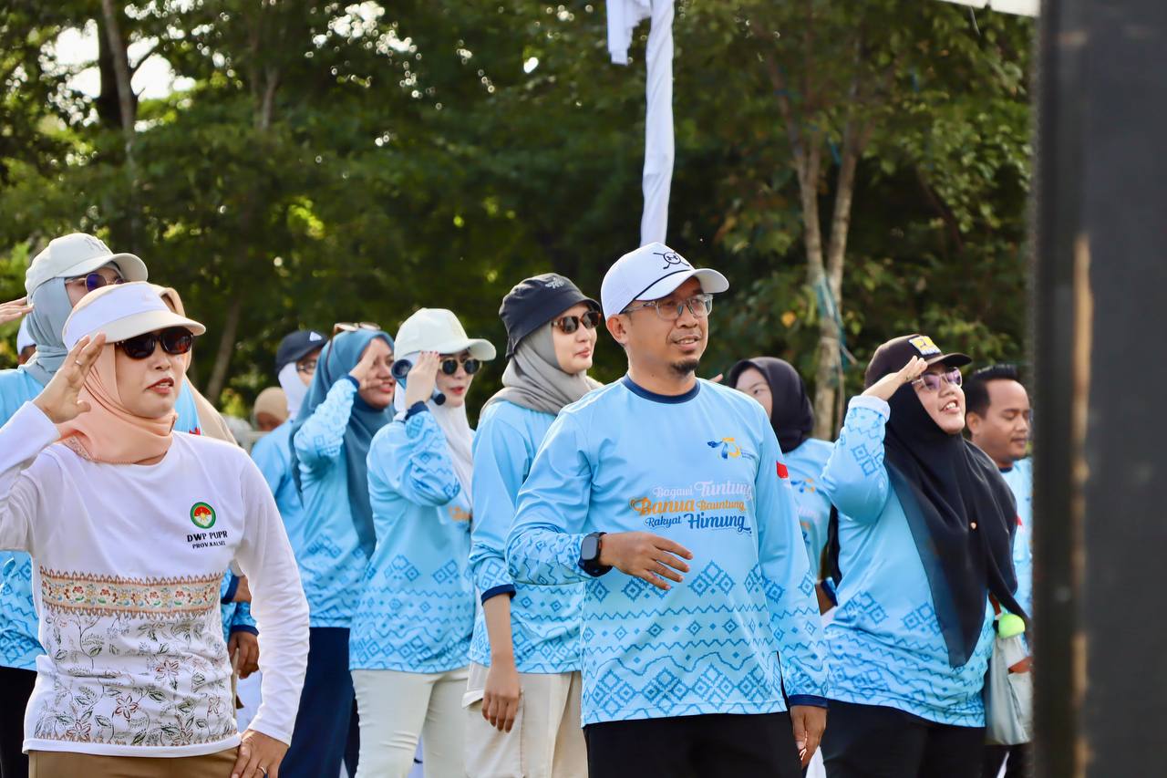 Rangkaian kegiatan dimulai dengan jalan santai bersama yang diikuti oleh seluruh ASN dan pegawai. Suasana pagi terasa semakin hangat ketika para peserta melanjutkan dengan senam bersama yang dipandu instruktur, menambah semangat dan kekompakan seluruh peserta yang hadir.